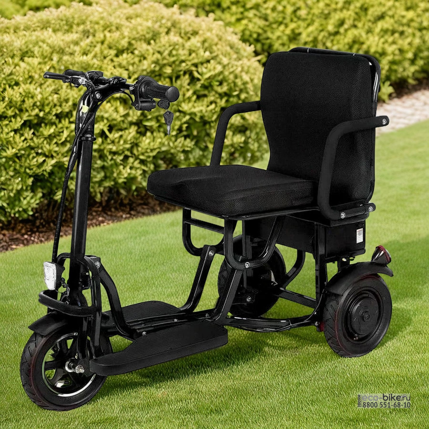 Модель отличается простой конструкцией, легким управлением и неприхотливостью в эксплуатации. Электрический транспорт обладает удобной и низкой посадкой, благодаря чему отлично подходит для пользователей с больными ногами и пожилых людей, которым тяжело поднимать ноги. На электротрицикле можно совершать прогулки по парку, ездить к родным и друзьям, выбираться за покупками.
