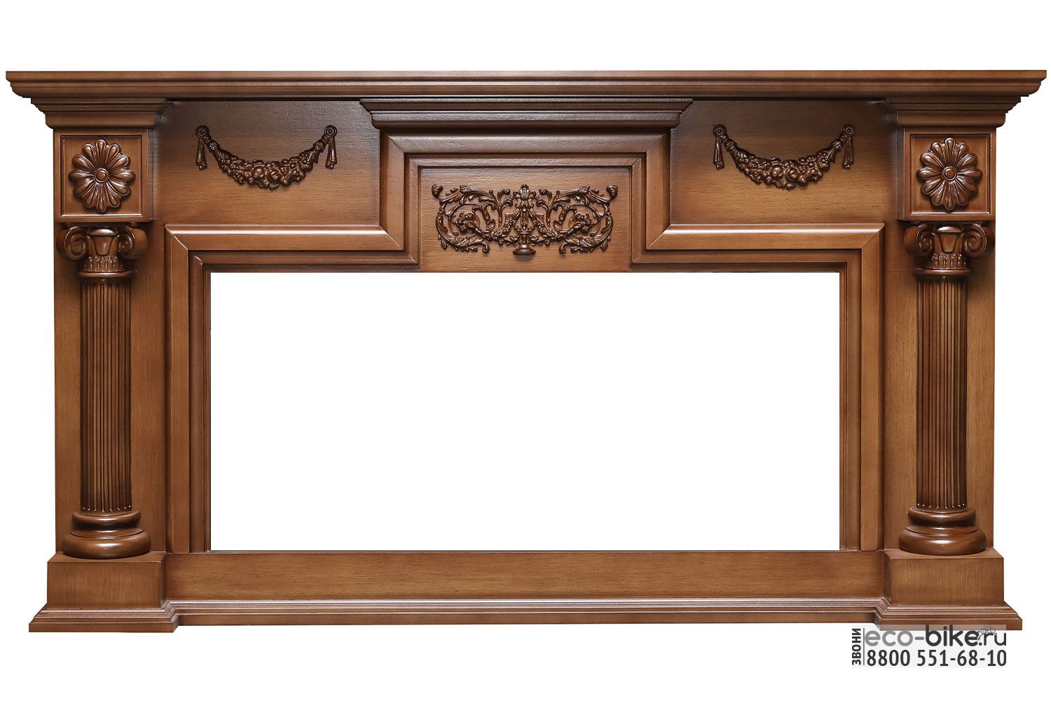 Портал London выполнен в утонченном цвете слоновой кости с изящной патиной. Его строгий классический стиль дополняется элементами античного декора: резным орнаментом на фронтальной части и выразительными боковыми колоннами.